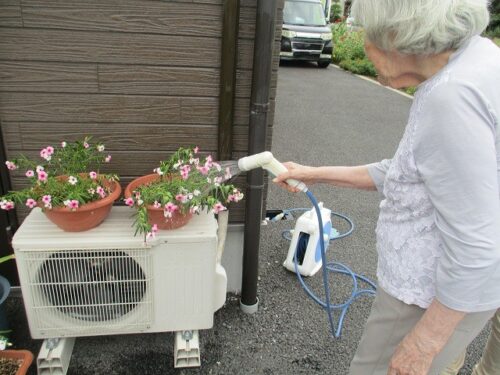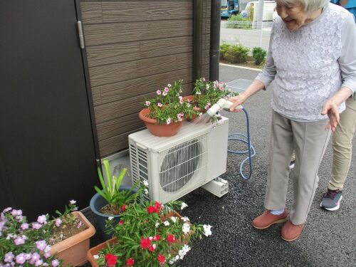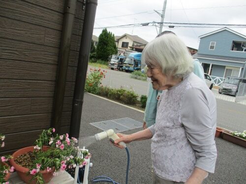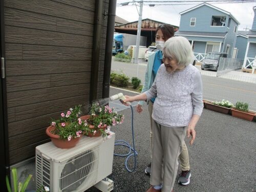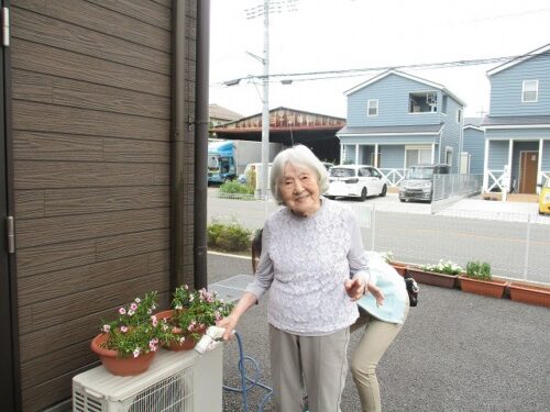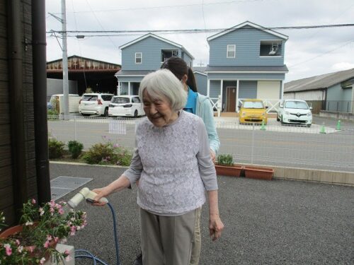 お外に出られて、お花の水やりをして下さいました😊
