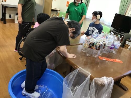 さいだいじ館では、集まったペットボトルをリサイクルしてもらう