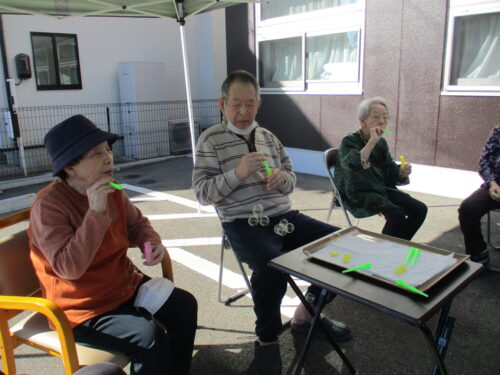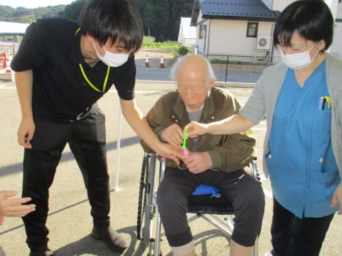 本日は、3Fの入居者様をお連れしてテントの下でシャボン玉🎈