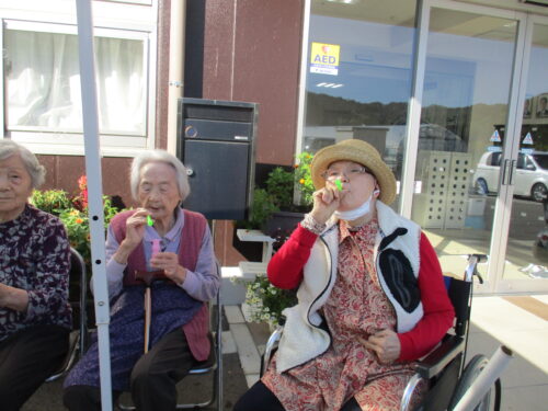 風の向きでシャボン玉が、お顔に向かって来たり、いっぱい膨らましていた方もいらっしゃいました!!