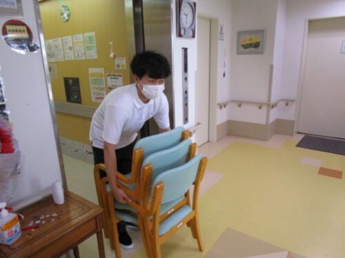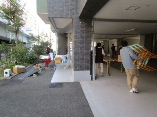 ほとんどの方が参加されるので机や椅子も全て駐車場へ降ろします