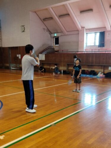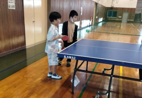 体育館では、飛行機を折って飛ばしたり、卓球やバトミントンをしました。
