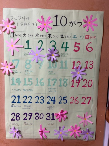 本日は10月のカレンダー📆製作はコスモスの花を製作でしました。