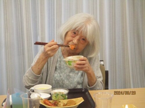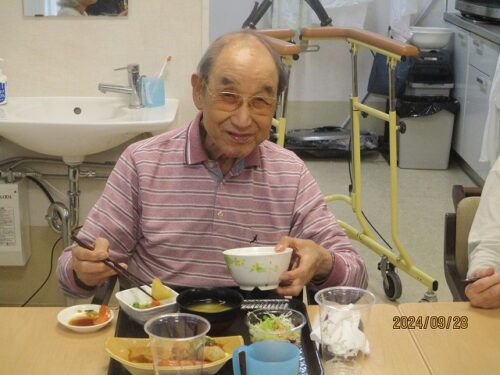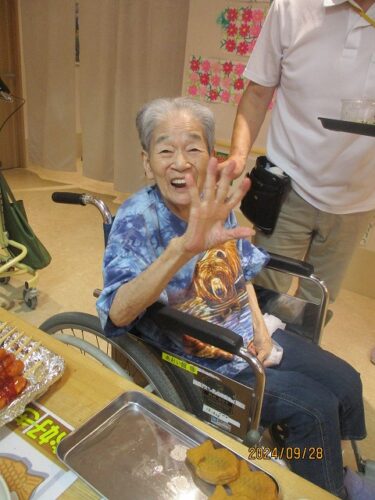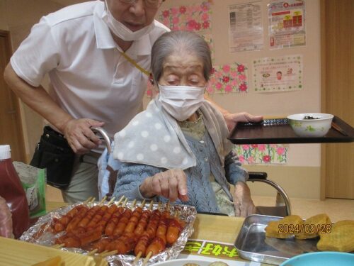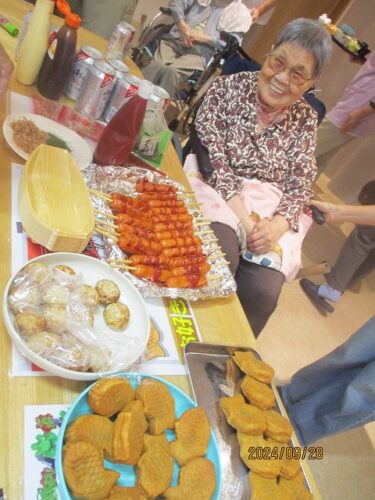 秋祭りの昼食は、屋台で好きな物を選んでもらう様式で。