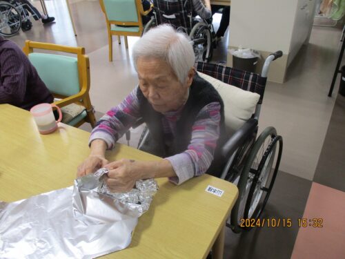 ご入居者様より、「いしや~きいも。」と大きな声で言われておられる方がおり