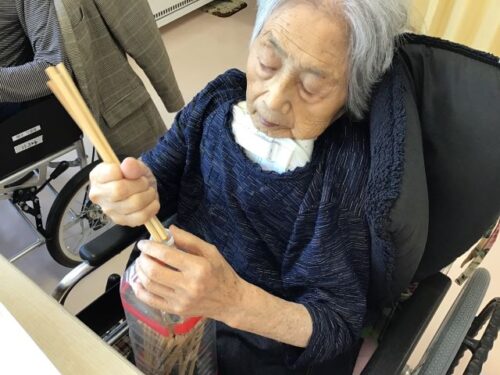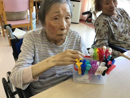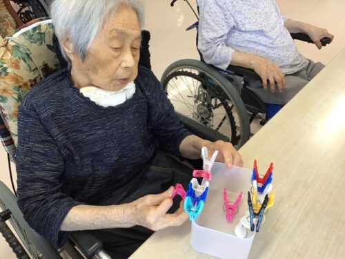 こちらは、目が見えづらいご利用者様ですが、手で形を探りながら丸や四角を作っています😊
