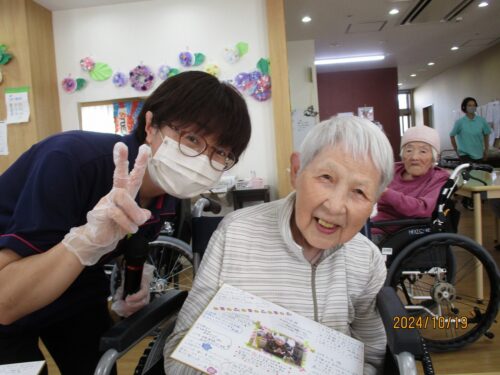 職員からお祝いのメッセージ色紙が贈られました