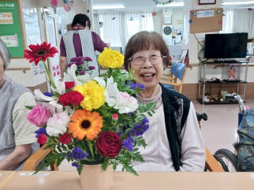 さわやかいずみ館 フラワーアレンジメント② さわやかいずみ館 2024-10-20 2024-10-19 昨日に引き続き フラワーアレンジメントをお届けします🌸 皆様 綺麗に出来上がり 満面の笑みです🤩