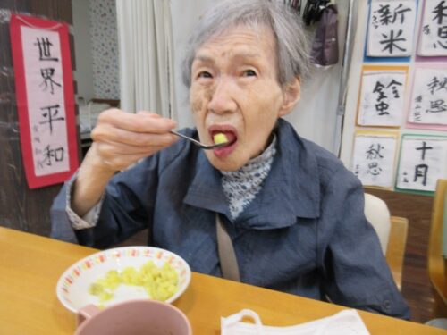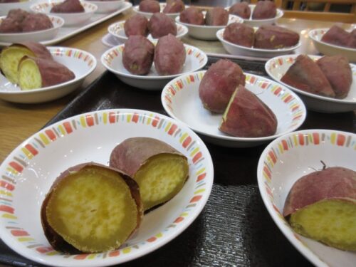 先日、さつま芋の日というのがありましたので、おやつに『焼き芋』を召し上がっていただきました!