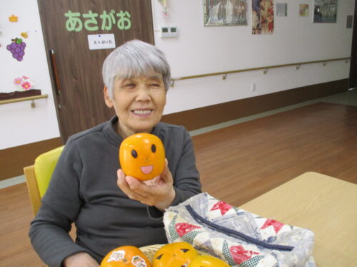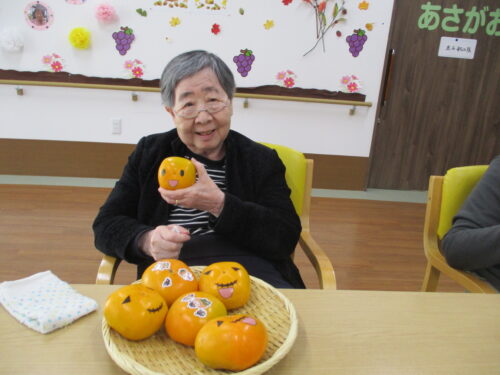 夕焼け色の甘い柿を堪能しました♪皆様の笑顔も柿に負けないほど輝いてます。
