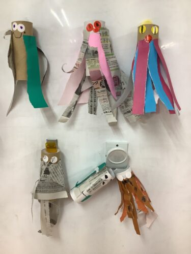 カサカサ、モゾモゾ...新聞紙の感触も楽しい制作❗❗