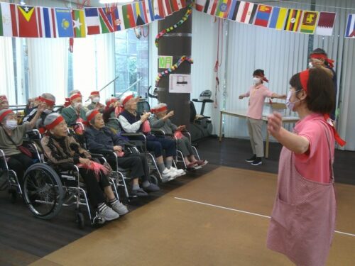 ちなみにですが、2階フロアは赤のハチマキ・3階フロアは白のハチマキ・4階フロアは黄色のハチマキです!応援うちわやポンポンもバッチリです!