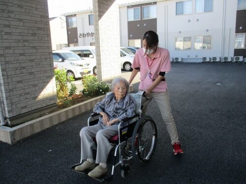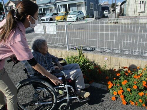 ご入居者様も、外の空気を吸って