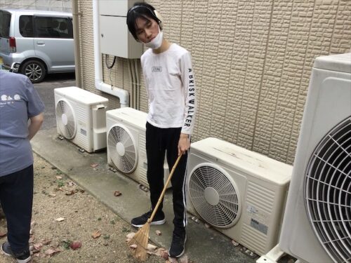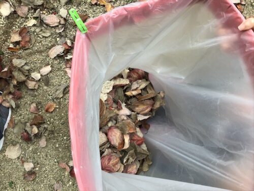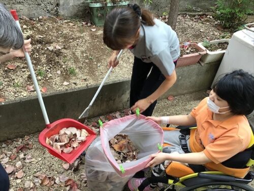 先日、スタッフが作ってきた、落ち葉そうじ楽チンアイテムで