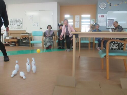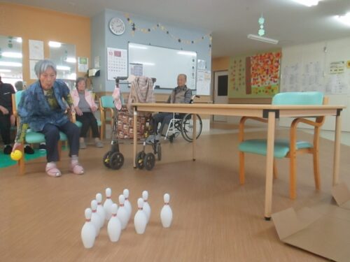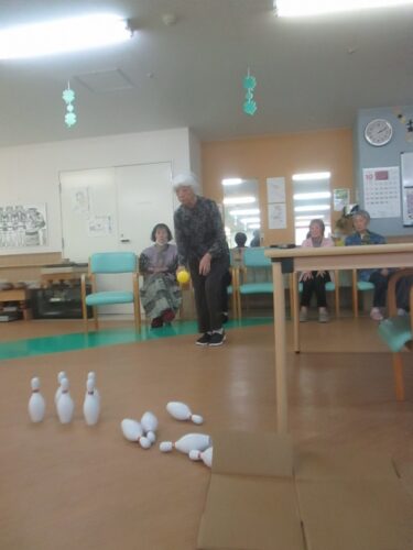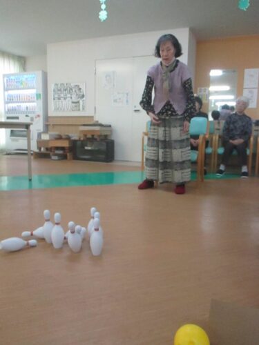 さわやか室蘭館 2Fボーリング大会♪ 2024-10-23 2024-10-22 皆様こんにちは! 本日は、2Fの午後レクの様子をご紹介します(*^^)v ボーリング大会が行われておりました~♪ ストライク目指して頑張ります! 狙いを定めます。 「えいっ☆彡」 大盛り上がりの2Fフロアでした~(*'ω'*)