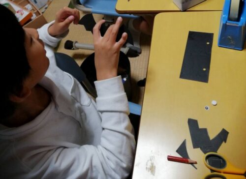 10月22日(火)の活動では、お部屋を飾るハロウィンプレートを作りました。