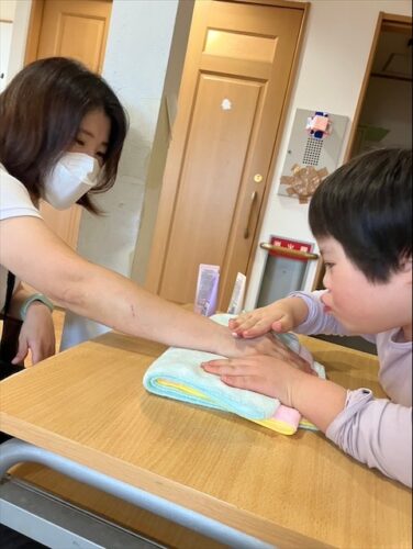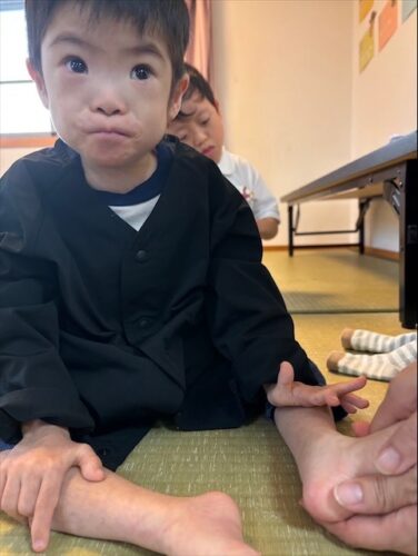 子ども達の可愛いらしい反応にマッサージをしている職員の心が癒される時間になりました🥰