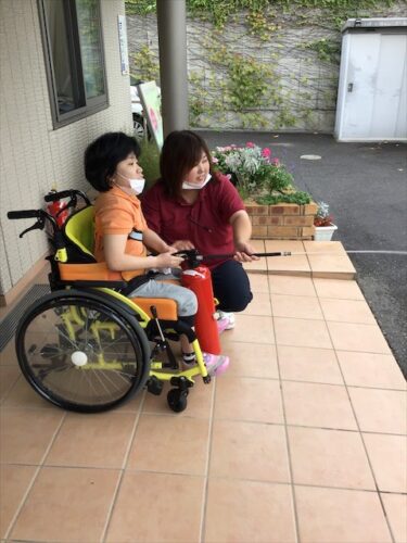 その後は外で、消火器の使い方を確認して、消火活動も練習しました😳