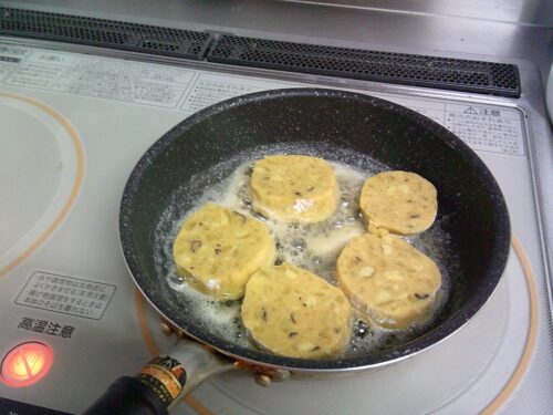 先日おやつにさつま芋もちを作り