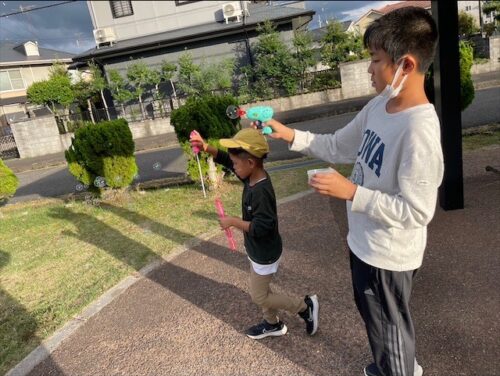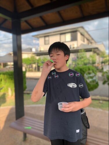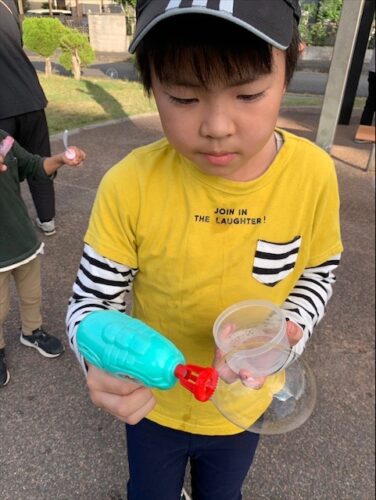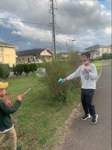 この日は穏やかな風が吹き、しゃぼん玉をするにはちょうど良かったです。