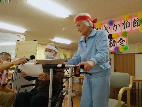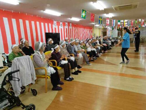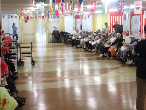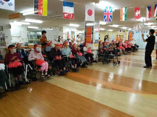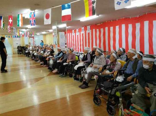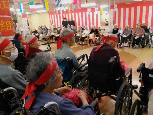 1F~3Fのご入居者様を紅🔴白⚪でチーム分けして並びました!