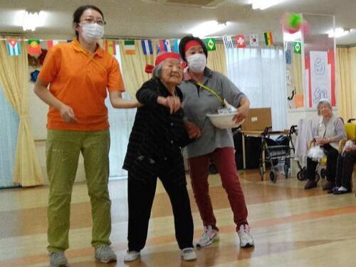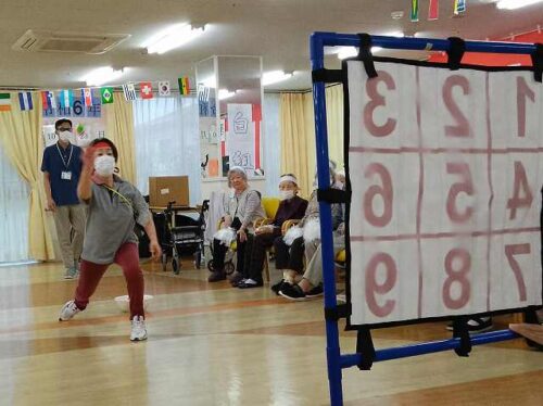 ボールを投げて当たった数字分の点数がチームに入ります!