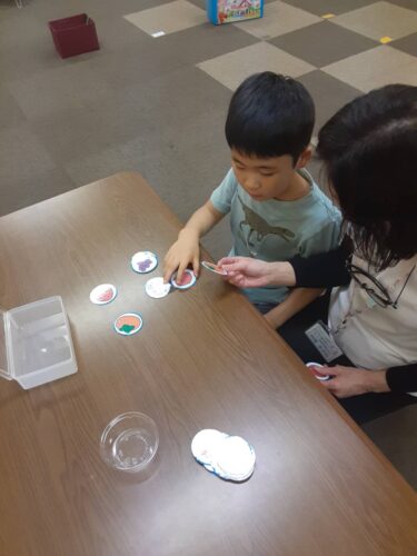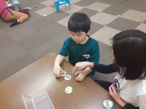 さわやか愛の家 さいじょう館 ゲームレク 2024-10-25 2024-10-25 こんにちは😊 さわやか愛の家さいじょう館🏠です。 今日のゲームレクはカードゲームを個別で行なっています。 クイズ形式で当てはまるカードを選んでいきます。 大正解✨ 次はフルーツのカードをマッチングしています。 大正解✨👏 【自由時間】 型はめ