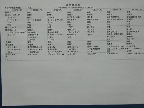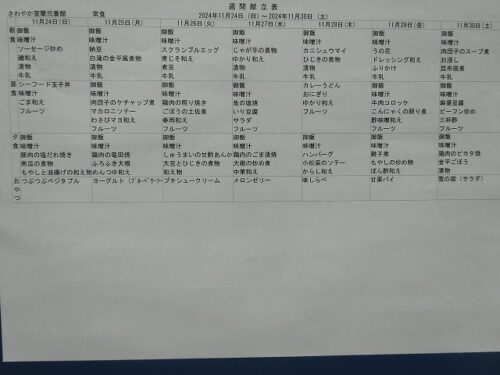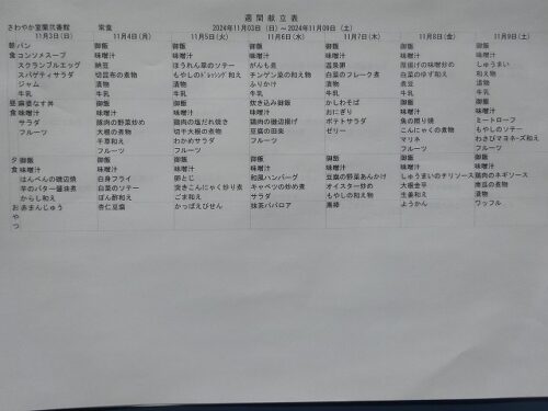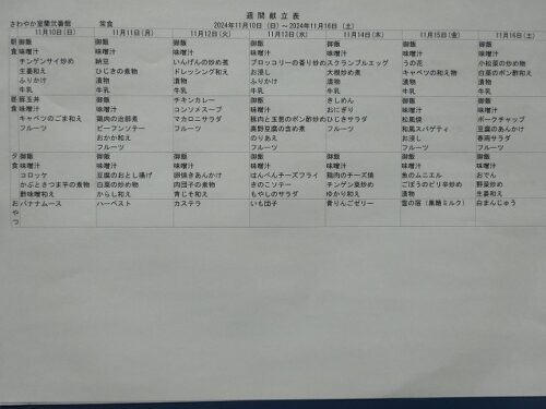 さわやか室蘭弐番館 11月 献立♪ 2024-11-01 2024-10-31 皆様こんにちは♪ 今月の献立をお届けします 行事食は23日(土)昼食です 食材の都合により急遽変更させて 頂く場合もあります ご了承下さい