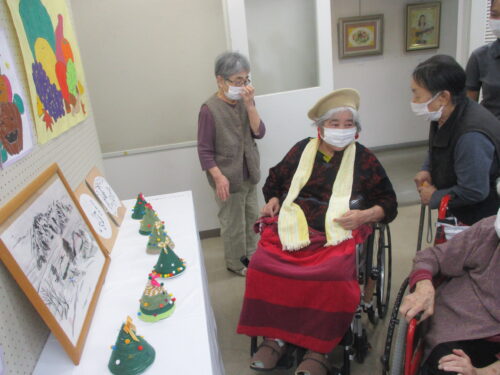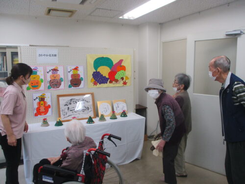 花美館の入居者様が創った作品も展示している他、若年〜高齢者とひろい年齢層の作品が展示されていました!