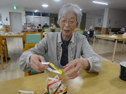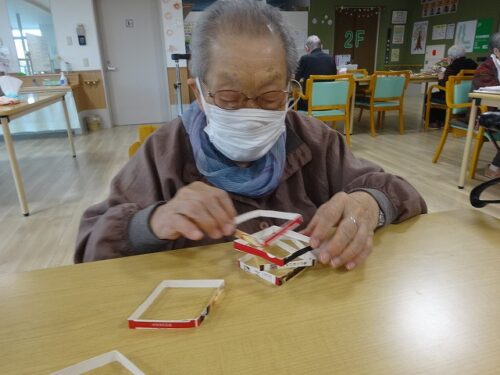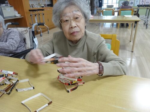 さわやか室蘭弐番館 2階 26日午後の様子♪ 2024-10-28 2024-10-28 皆様こんにちは♪ 26日の様子をお届けします 2階は誕生日の方がおられず(^^;) 牛乳パックタワーに挑戦です バランスを見ながら積み上げます ぶれてしまいました😢