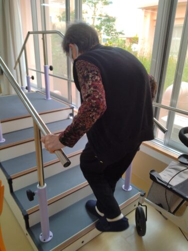 さわやか野方館 階段昇降【野方館】 2024-10-29 2024-10-28 リハビリで階段昇降を行っています✌️ 一歩一歩しっかり足をあげて、回を重ねるごとに スムーズに上れるようになったご利用者様も たくさんおられました😁