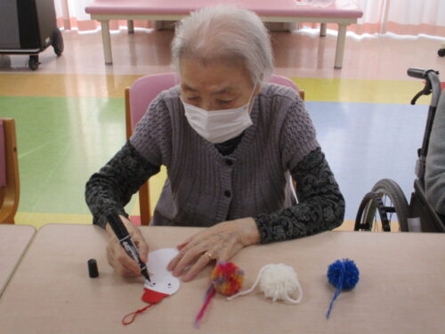 お顔を書いていただいて、ボンボンを付けて行きます!