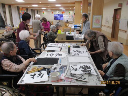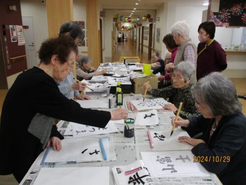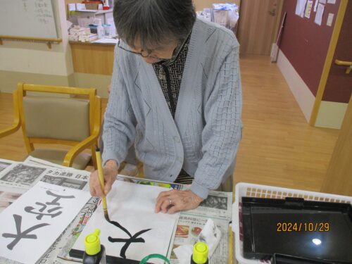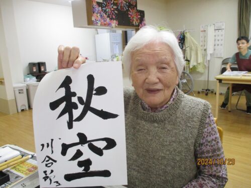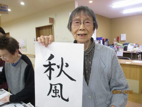 穏やかなご入居者さまはお手本なしで書かれました秋風