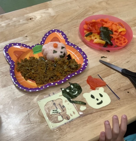 にんじんやパプリカ、スライスチーズを型抜きしてハロンウィン風にかわいく飾りつけしましたよ🎶