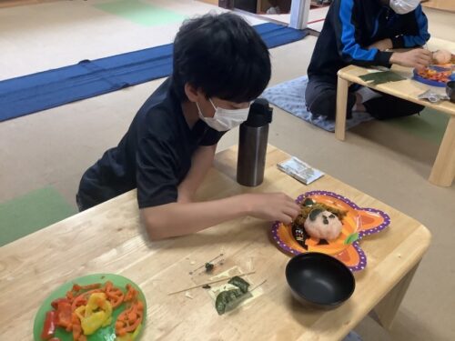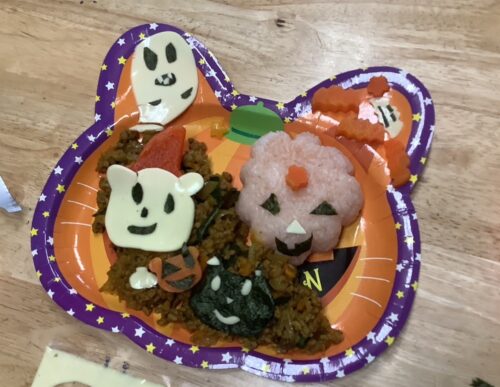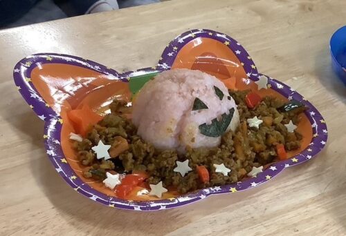 午前の部では、ハロウィンキーマカレーを作りました🍴