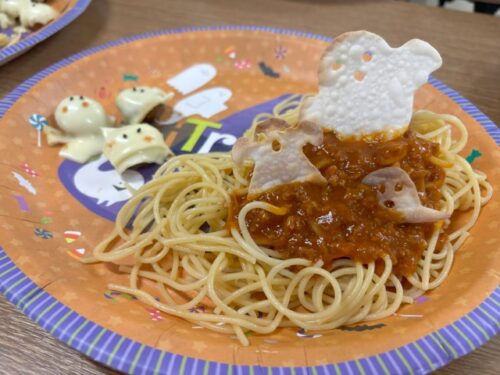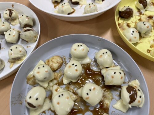 今回は昼食レクでハロウィンにちなんだお化けモチーフのものを