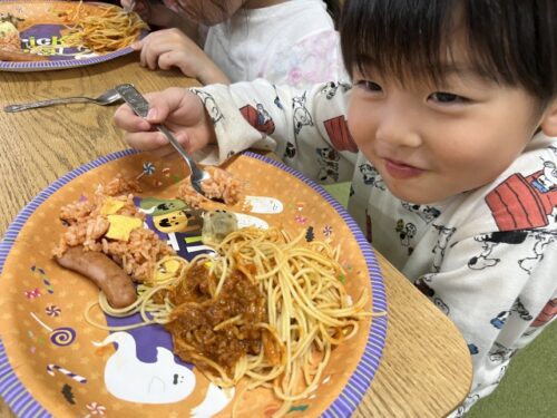 このプレートと一緒に、職員手作りのハロウィンオムライスをみんなで分けて美味しく頂きました😋