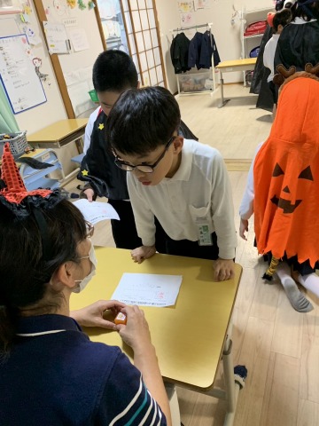 ダンスの後は,お菓子をゲットの時間です。簡単にはあげませんよ〜😁