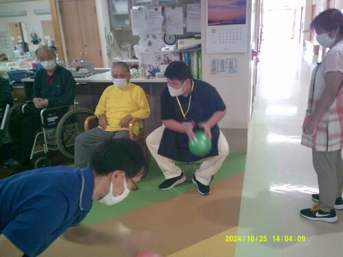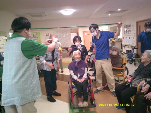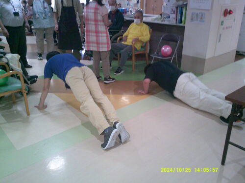 2回戦目は、なんと腕立て伏せ10回ผ(•̀_•́ผ)利用者様も頑張れー❗と応援していました🤭