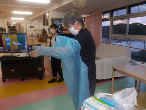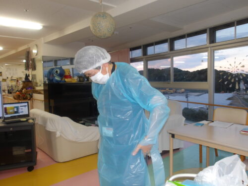 そして、実際にガウンの着脱訓練❢