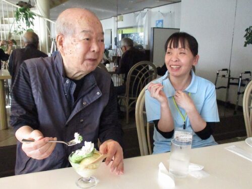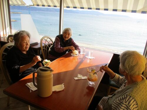 先日、入居者様と一緒に海の見える喫茶店までドライブに行ってきました。
