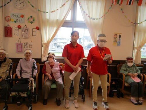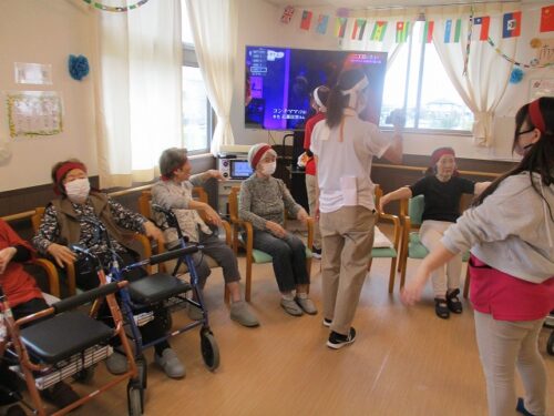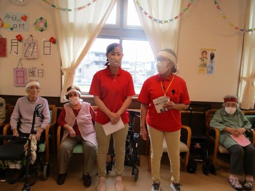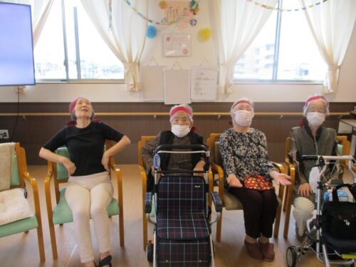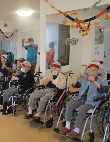 職員も輪の中に入って、皆様で体操をされています🧘🎵