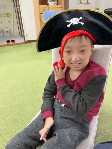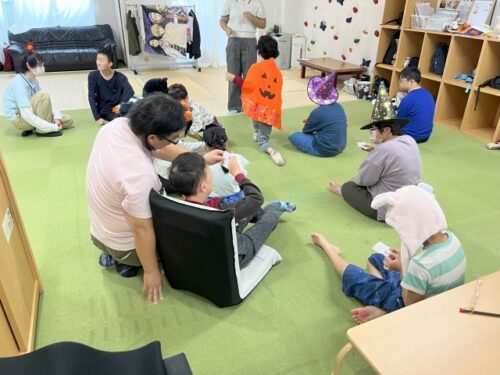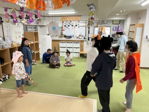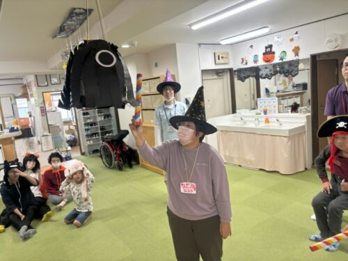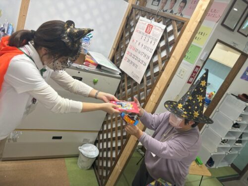 「トリックオアトリート!」と職員さんに元気に声をかけ