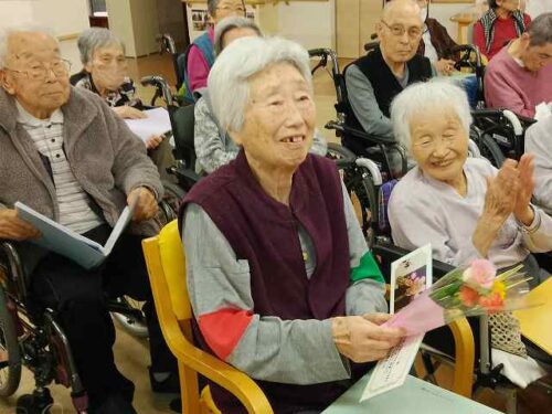 楽しい演奏と参加されたご入居者様の暖かい拍手👏とお祝いの言葉😀で、