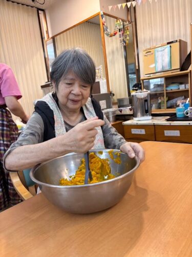 ハロウィンにちなんで、かぼちゃを使ったカップケーキを作りました!