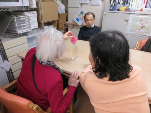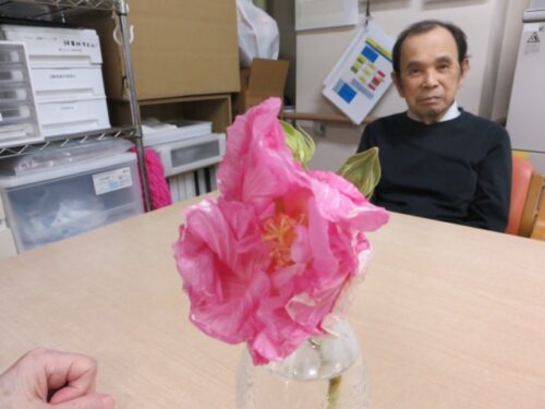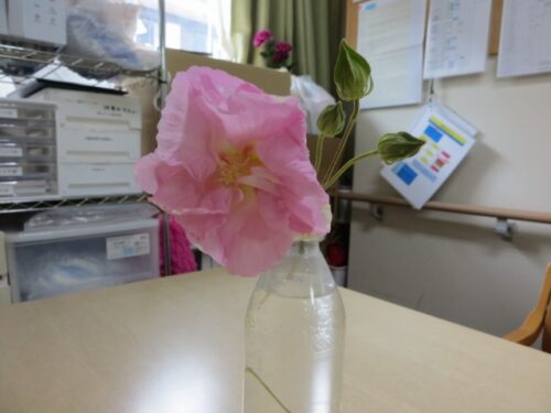 本日は酔芙蓉という朝は白い花を付け昼頃からピンク色に徐々に