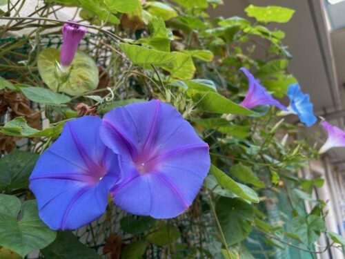 さわやかはーとらいふ西京極 秋の朝顔 2024-11-03 2024-11-02 こんにちは、さわやかはーとらいふ西京極です。 今日は施設の西側に咲いた朝顔をご覧下さい。 とても大きな大輪の朝顔で、まだまだご覧いただけます。 施設に来られた時はぜひご覧ください。