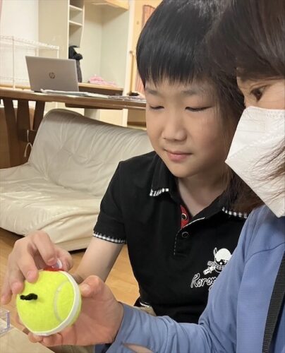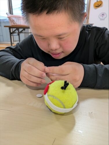 その中で制作をしたのが、いただいた廃材テニスボールを使ったミニオン作り。