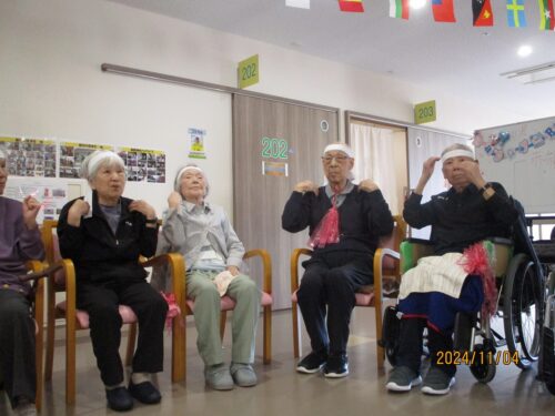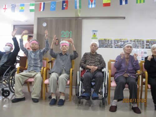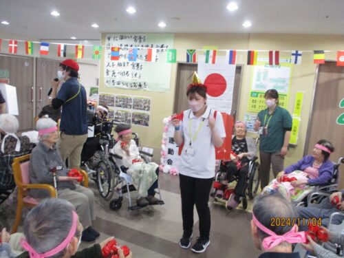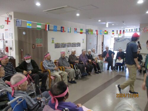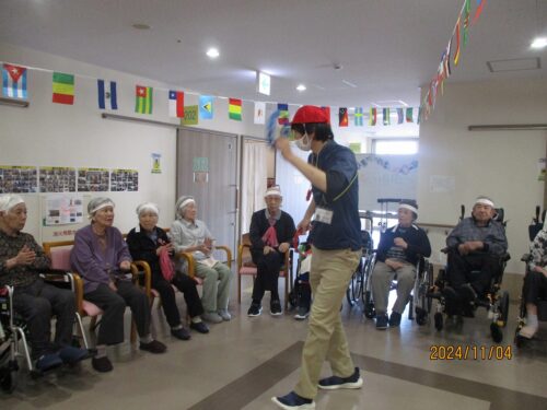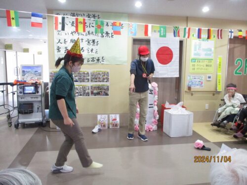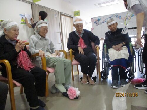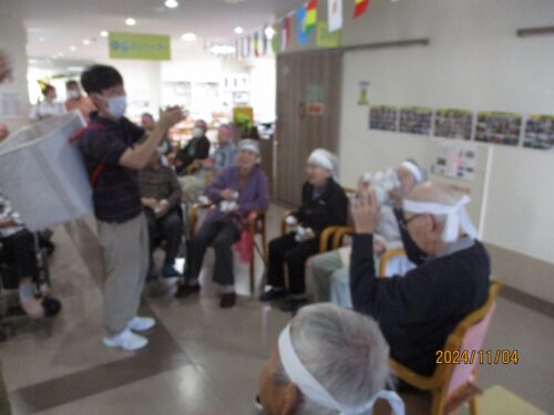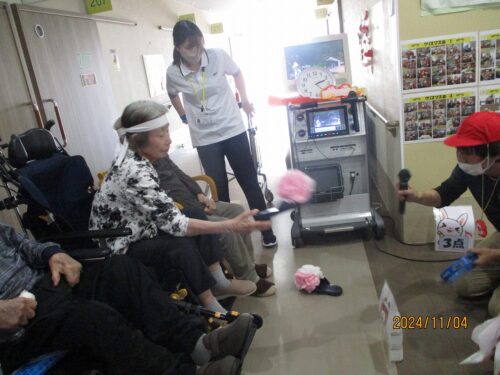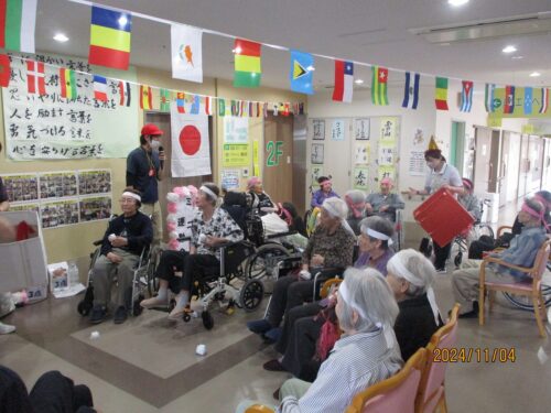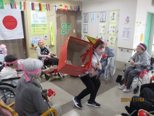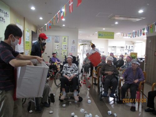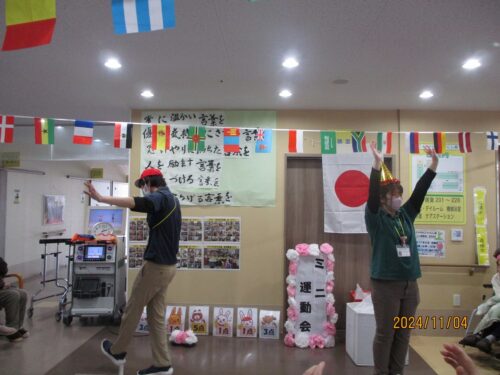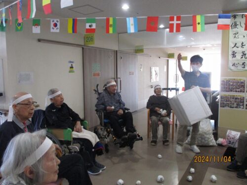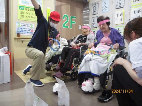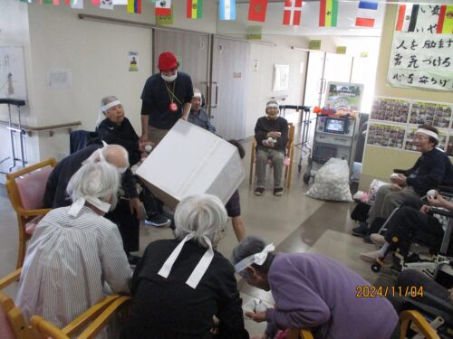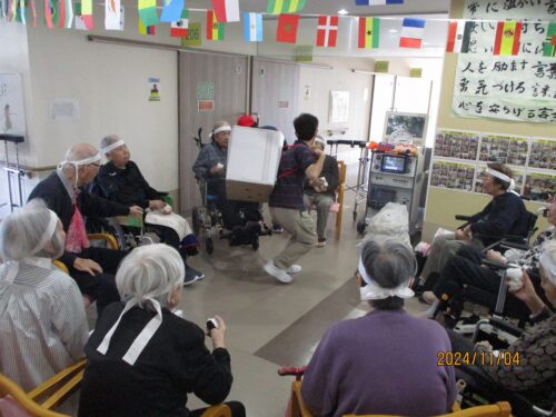 スリッパ飛ばしと玉入れの2種目を行い競い合いました。