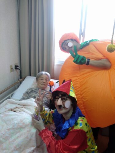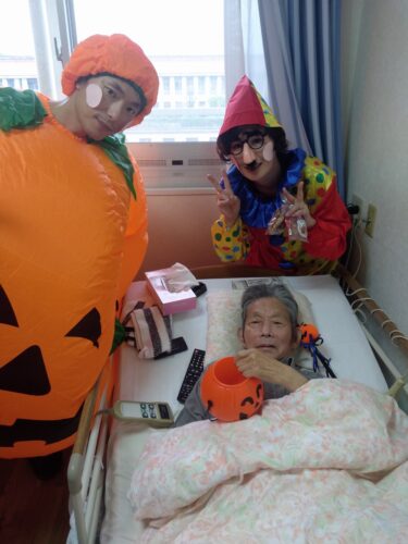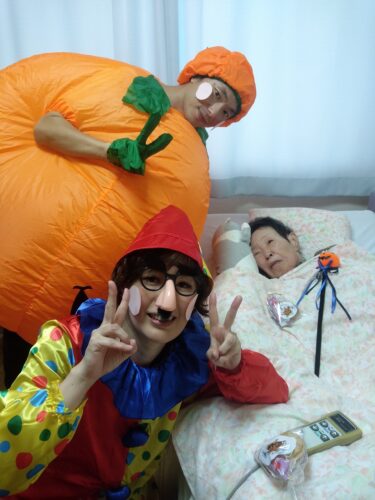 鹿田AM, 森副施設長が 'kawaiku' 仮装され、各フロアを回られました